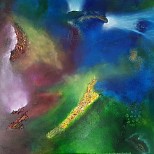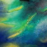 Flowpainting. Watermengbare olieverf met structuren. Veel diepte en lichteffecten