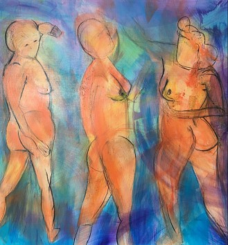 Eerst los geschildert daarna alle drie op een doek in 2016 en dit is met het zelfde themaschilderij in 2017