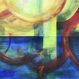 Een globale impressie van het schilderij "Beweging in Chaos 2" 100x100cm.