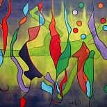 Een globale impressie van het schilderij "Fascinated" 80x60cm.