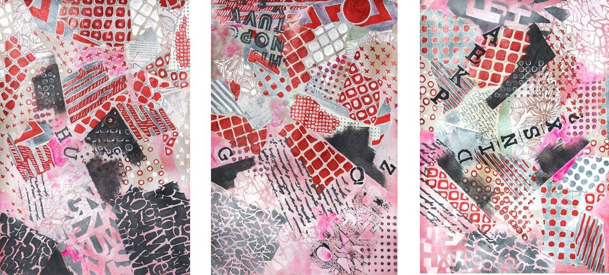 Triptych of three sheets of paper (42 x 29.5 cm), made on 175 gr paper in collage technique+ acrylic painting. (59 x 42 x 0.1 cm)