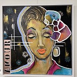 Abstract schilderij ,mixed media, glas glitter en goud poeder toe gevoegd aan acryl verf op canvas3D doek. Mat afwerking vernis laag. Zijkant zwart afgewerkt. + ophang systeem. 160x80x3;5 cm.