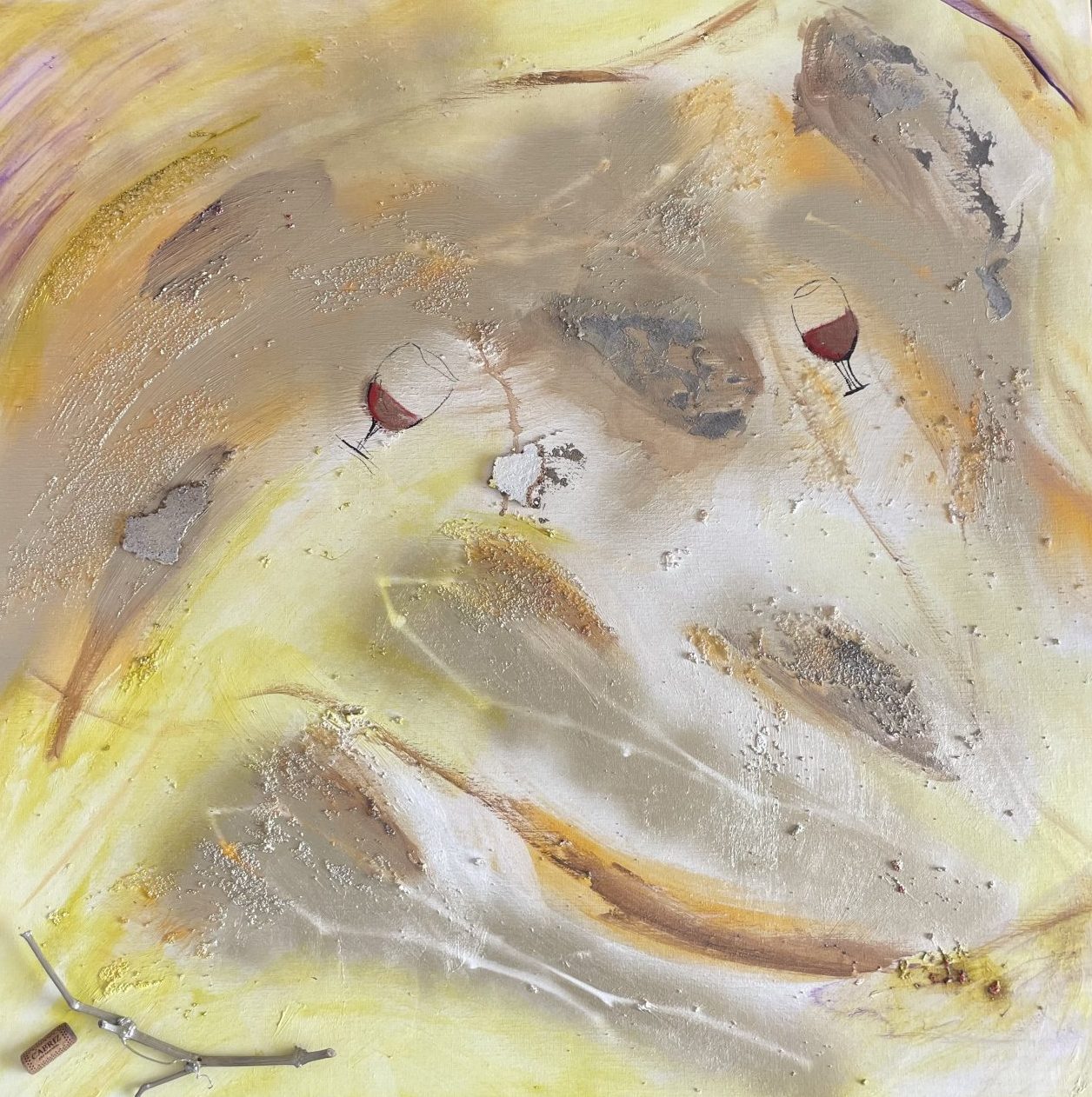 Een globale impressie van het schilderij "Restaurant" 100x100cm.