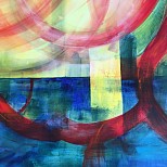 Een globale impressie van het schilderij "Middelandse zee" 150x150cm.